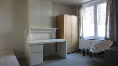 Recent gerenoveerde studentenkamer te huur 585€/maand Oppervlakte 20m2 Volledig bemeubeld Alle kosten inbegrepen (EGW - internet - poets...