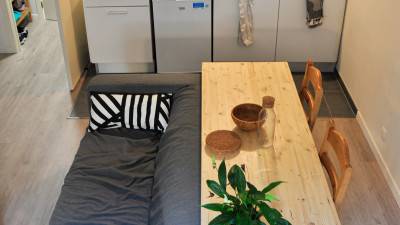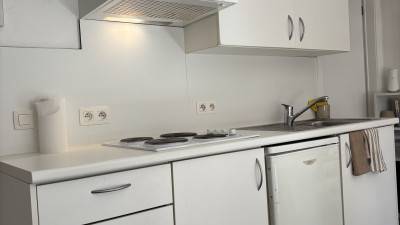 -mooie flat met volledig uitgeruste keuken, inbegrepen oven, microgolfoven, koelkast met vriesvak, kookplaat, vaatwasser, dampkap, met stene...