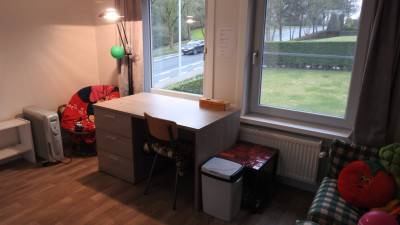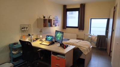 Moderne & gemeubelde (bed & bureau) studentenkamer met eigen sanitair (douche & toilet op kamer). Faciliteiten: gezamelijke fietsenbergi...
