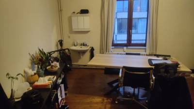 Ruime gemeubelde kamer (25 m²) op het 2de verdiep; Centraal gelegen eigen lavabo (met warm water), koelkast en microgolf gedeeld sanitair ...