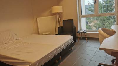 BESCHIKBAAR VANAF 1 FEBRUARI 2026 TOT EINDE ACADEMIEJAAR! GEEN DOMICILIE! Modern ingerichte lichtrijke kamer met laminaatvloer, ruime klee...